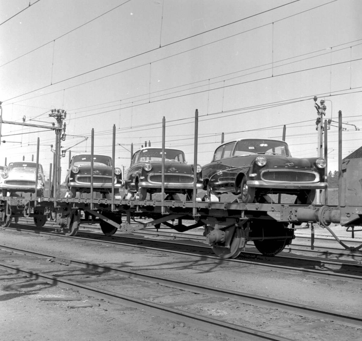 Titel: Personbilar lastade på öppengodsvagn