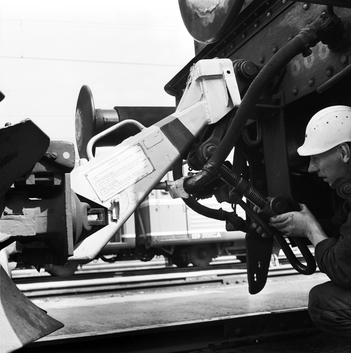 Kopplingsanordning mellan motorvagn och lok med instruktionsskylt
