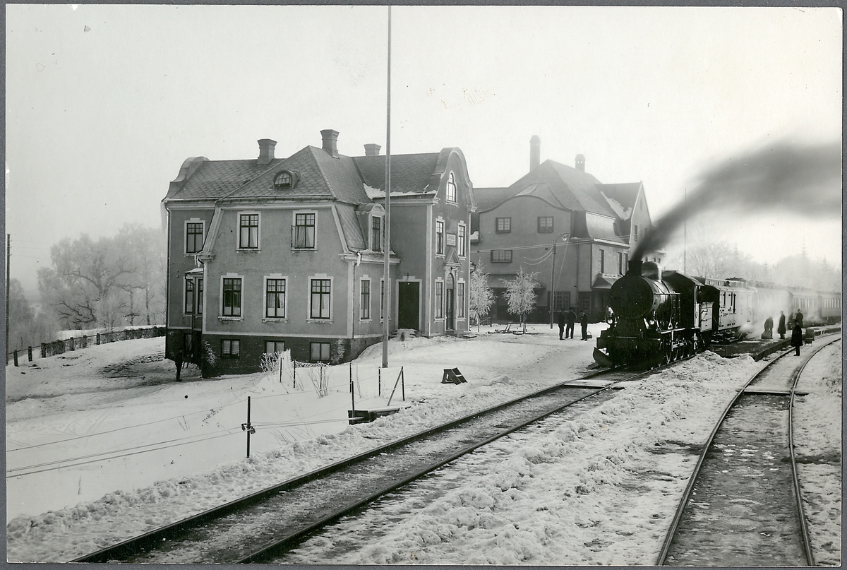 Pingstaftonens förmiddag 1910 brann stationen ned till grunden tillsammans med Hotell Drott, Lilla Hotellet och Järnvägshotellet. Stationsbyggnaden var från sitt ursprungliga skick påbyggd med en våning, samt en farstu norrut. 1912 stod det nya stationshuset färdigt. Intill dess användes en reservstation i en fastighet som tillhörde DJ och som låg vid spårområdet på södra sidan.