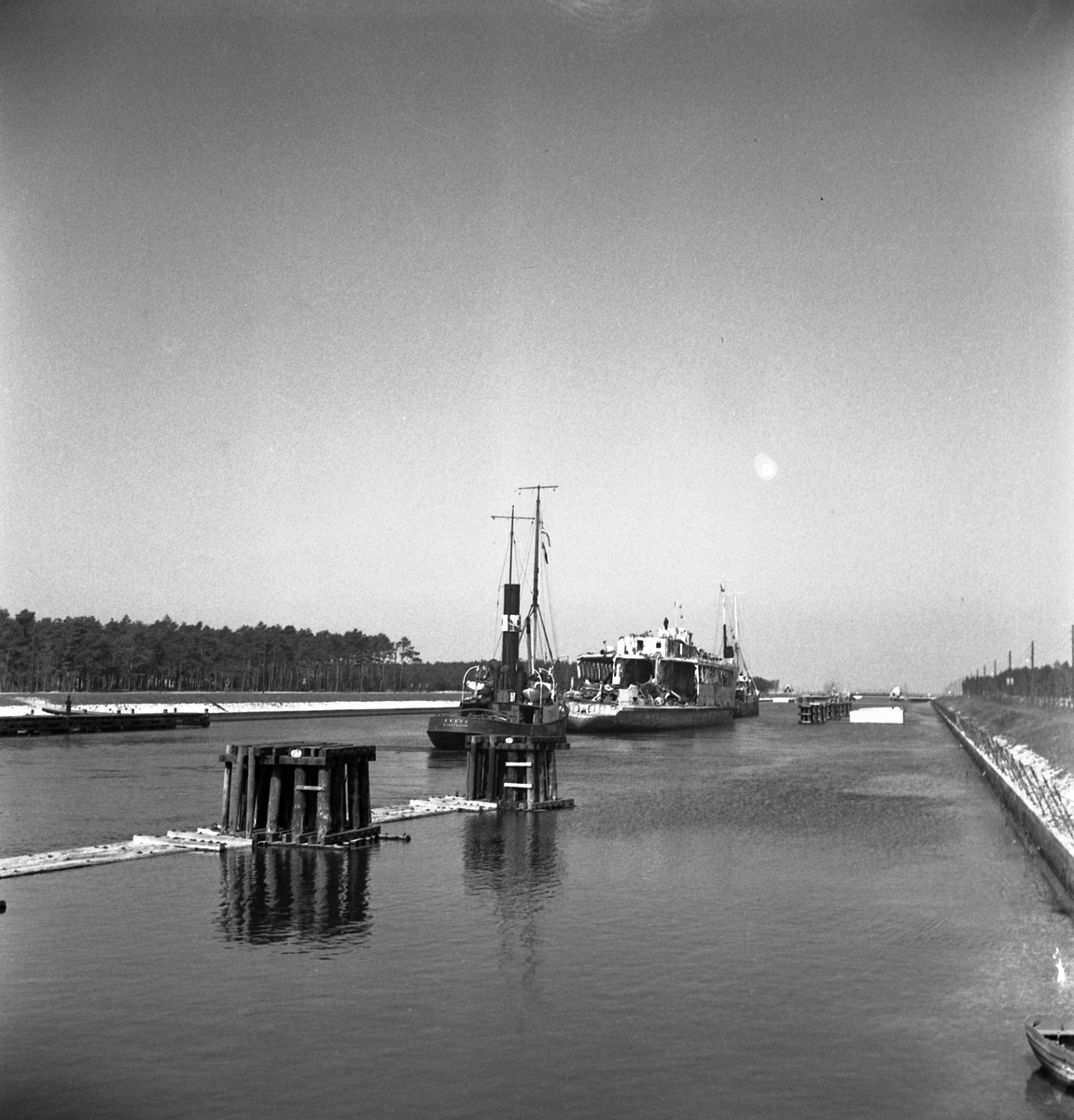 Den förlista isbrytande färjan Starke bogseras efter bärgning. Här i Falsterbokanalen på väg till Kockums i Malmö.