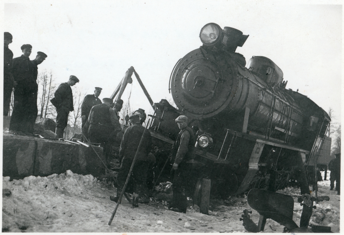 Urspåring av HNJ lok 42 (tåg 62) i Forsheda den 2/3-1936