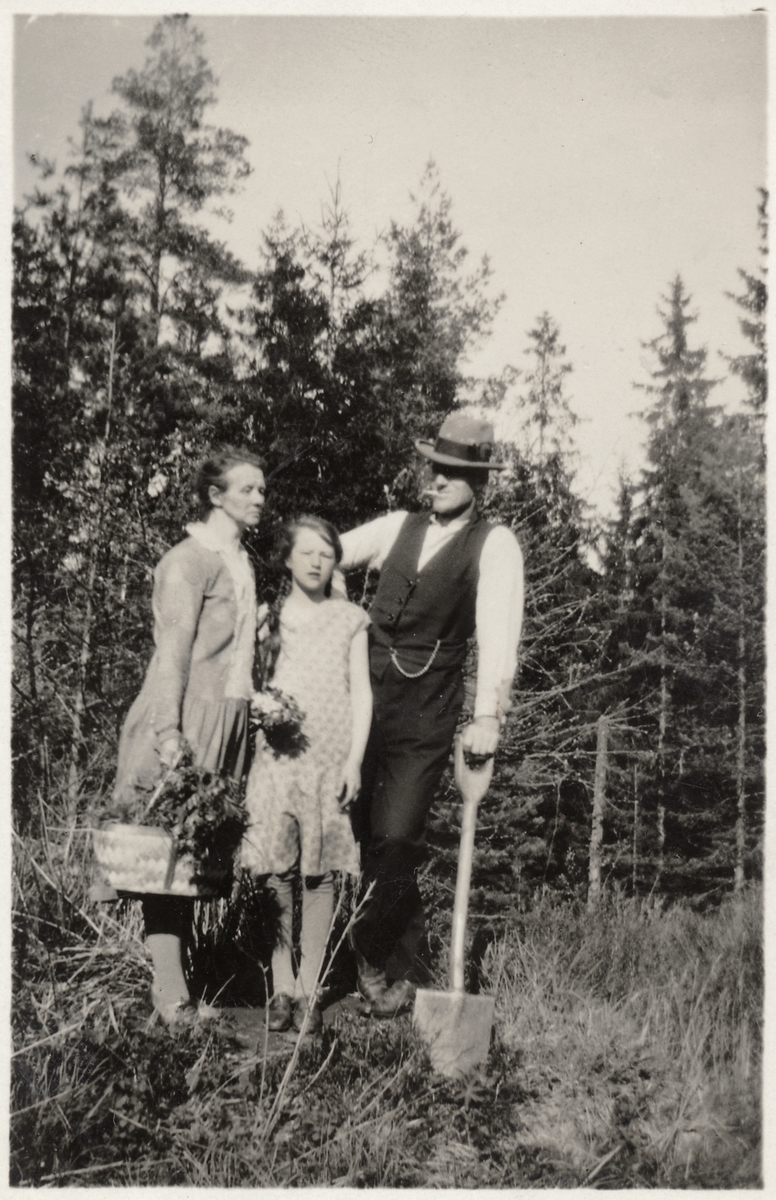 Tekla Andersson, dottern Ingeborg och Långsjö-Pelle på besök i Nybo under pingsten.