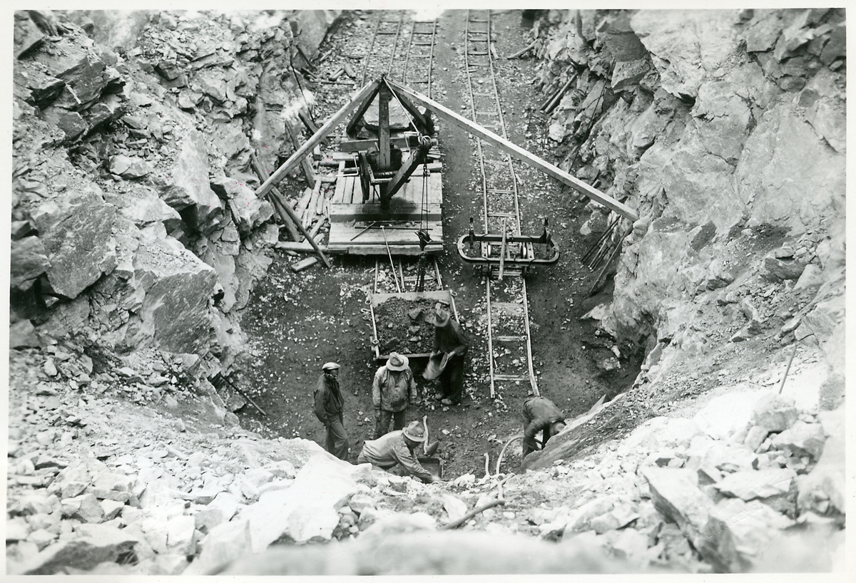 Bergskärning 3/400 längs linjen mellan Ulricehamn och Jönköping. Decauvillespår, de färdiga rälslängder användes som provisoriska banor för banarbetsfordon.