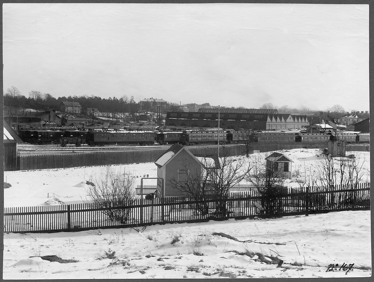 Hitom lokstallet står ett par resgodsvagnar men närmast en gammal SJ I-vagn med skräp på. Den teakklädda vagnen är en SJ Ao4 och den är kopplad till en SJ C3c. På spåret hitom en SJ ABo1 sedan någon SJ Co eller SJ BCo. Man ser toaletten på tredjeklassen.