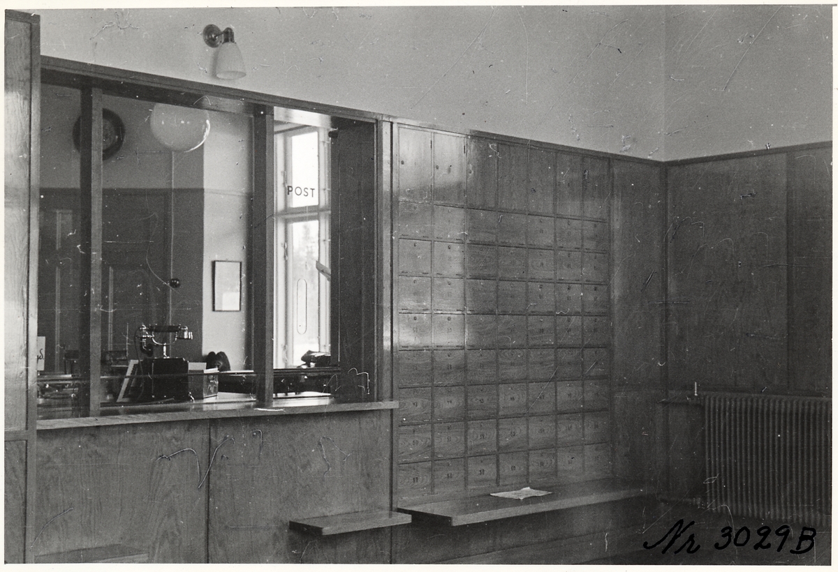 Titel: Biljettluckan och postboxar på Skorpeds station.