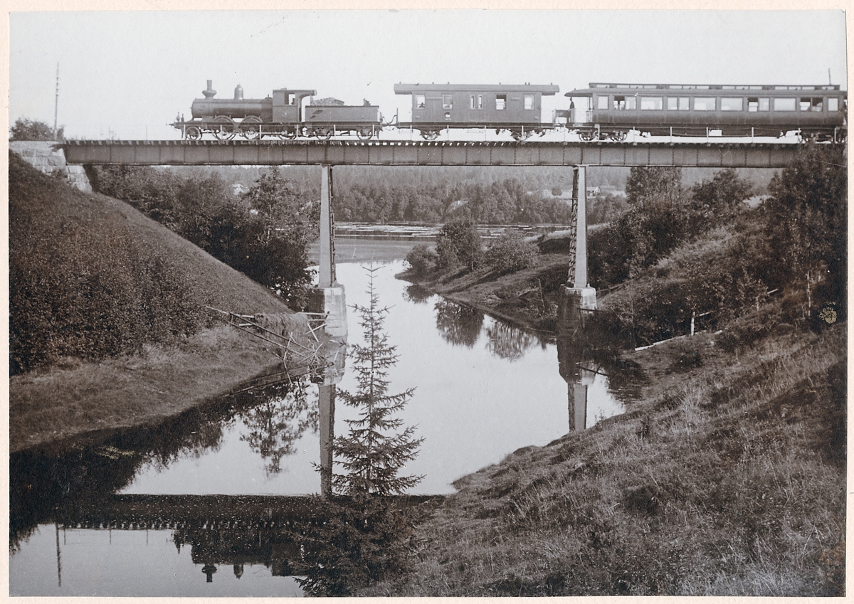 Järnvägsbro över Lustån på linjen mellan Hedemora och Avesta Krylbo. Södra Dalarnes Järnväg, SDJ lok 9.