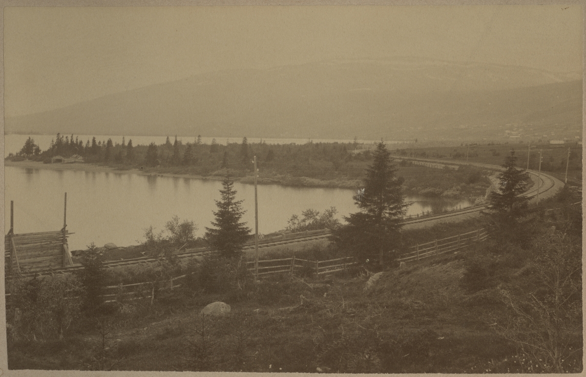 SJs banbyggnad av Linjen Torpshammar- Riksgränsen (Storlien) vid orten Åre (Kyrkviken), någon gång mellan år 1874-1884.