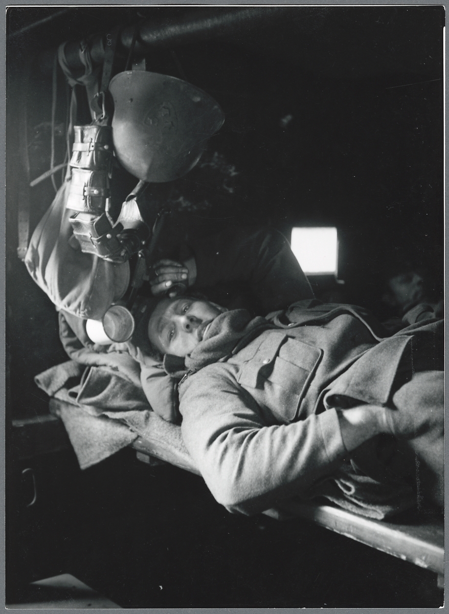 Titel: Militärtransport på linjen mellan Nässjö - Falköping. Ombyggd godsvagn för husering av soldater.