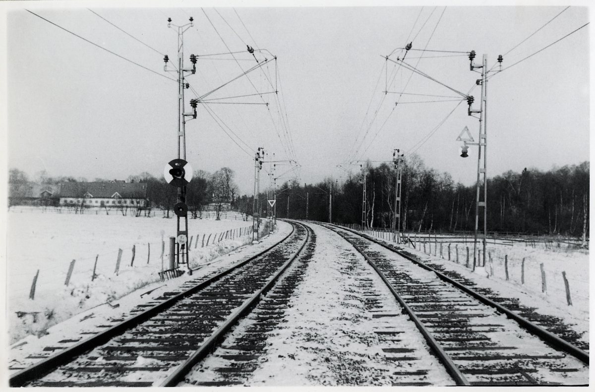Försignal med sidotågsväglykta och orienteringsmärke.