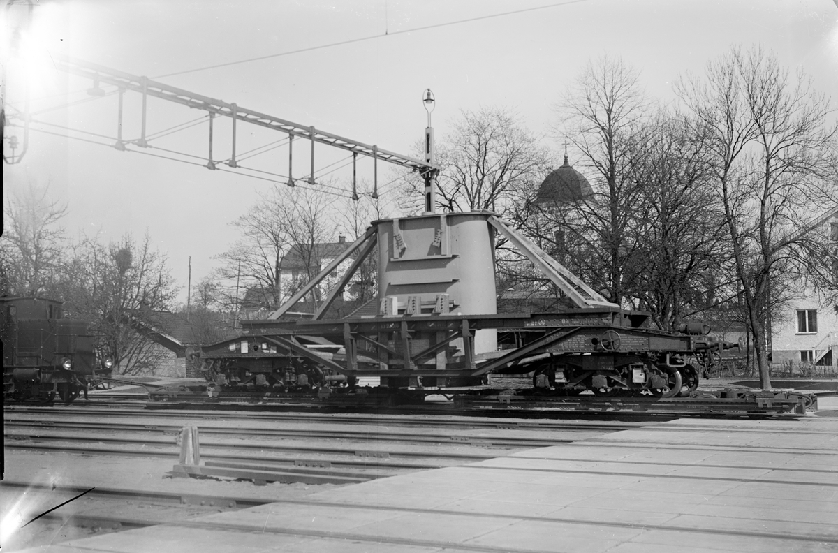 Smalspårsloket NÖJ 11 "Norrköping" vid Kimstad station, här med en öveföringsvagn lastat med en normalspårig djuplastningsvagn. NÖJ 11 "Norrköping" byggdes 1904 av Nydqvist & Holm AB för Norra Östergötlands Järnvägar. Loket byggdes om 1935. Vid förstatligandet 1950 fick det littera SJ S26p 3173. Det skrotades slutligen 1955.