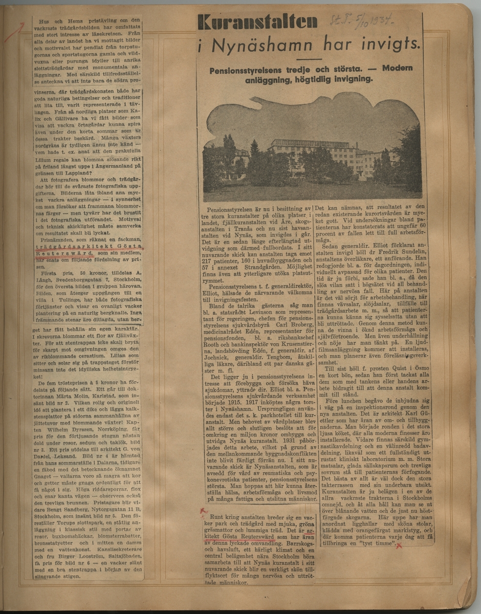Stockholms Tidning, 05-10-1934: Kuranstalten i Nynäshamn har invigts.