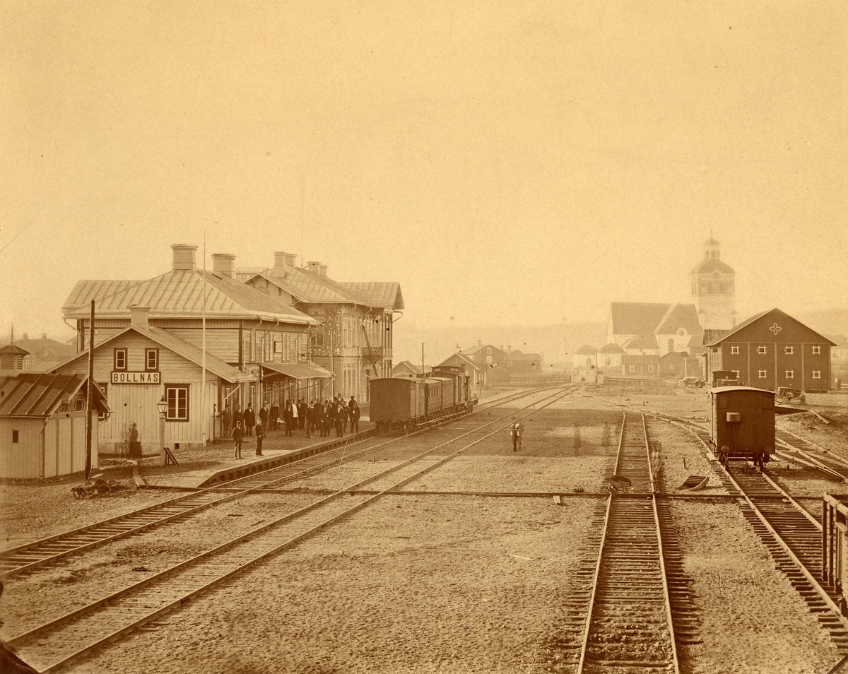 Bollnäs station 1878. Med på bilden vid stationen är följande: