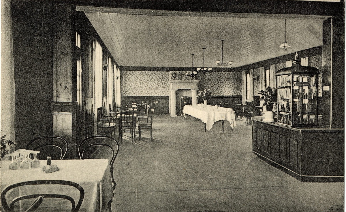 Titel: Tillberga station 1907-1926. Interiör från järnvägsrestauranten.