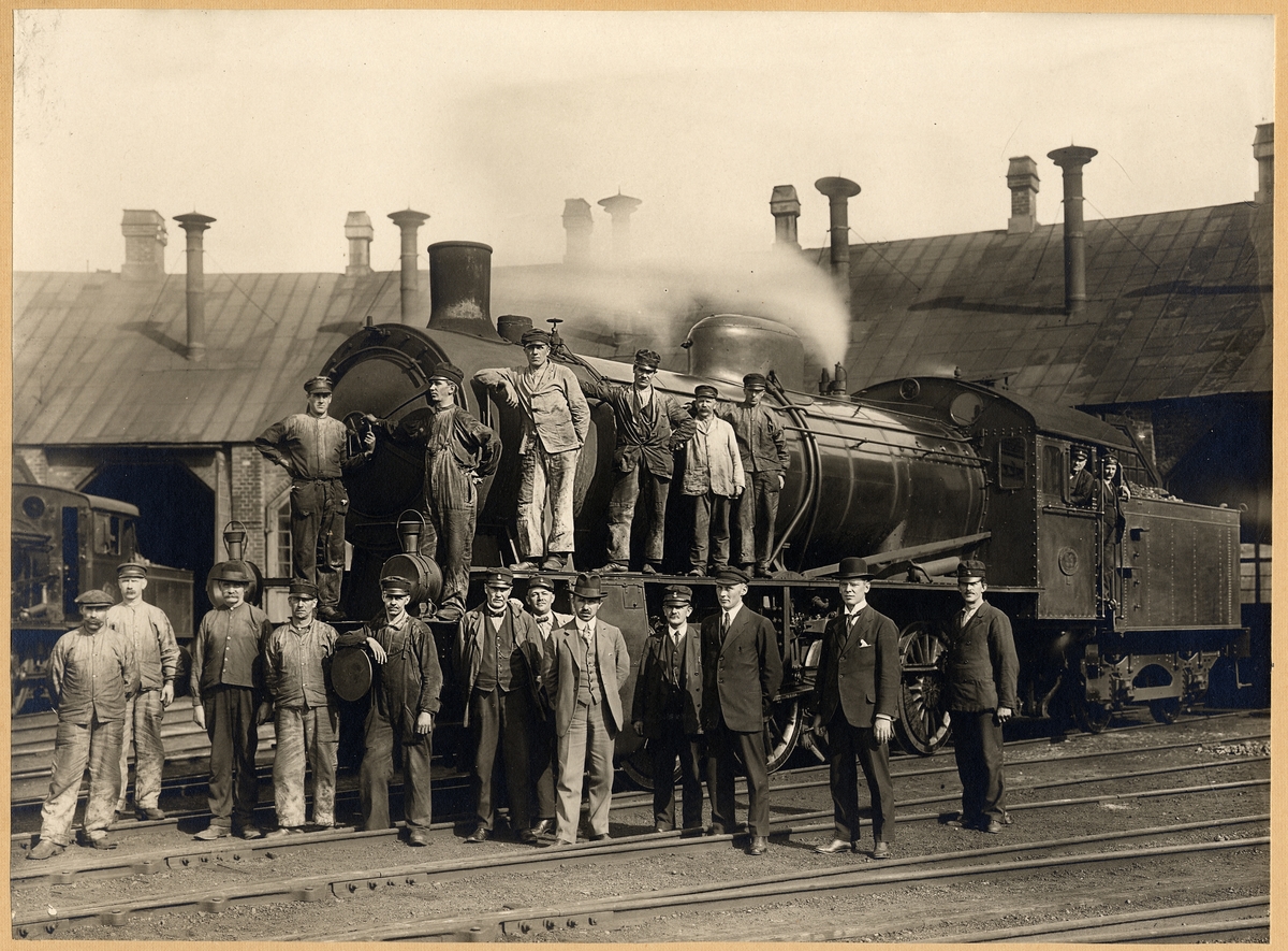 GDJ lokstation i Falun 1923. Loket är SWB 59. Lokförare Per Erik Eriksson, Lokeldare A. Joel Nordström.