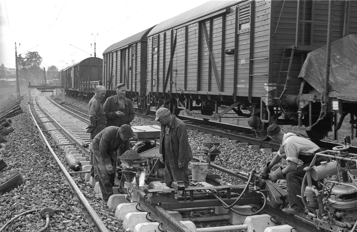 Spårrevision. Räls och slipersbyte (betongslipers). Linjen Rotebro, R - Zlpv. Svetsar skarv