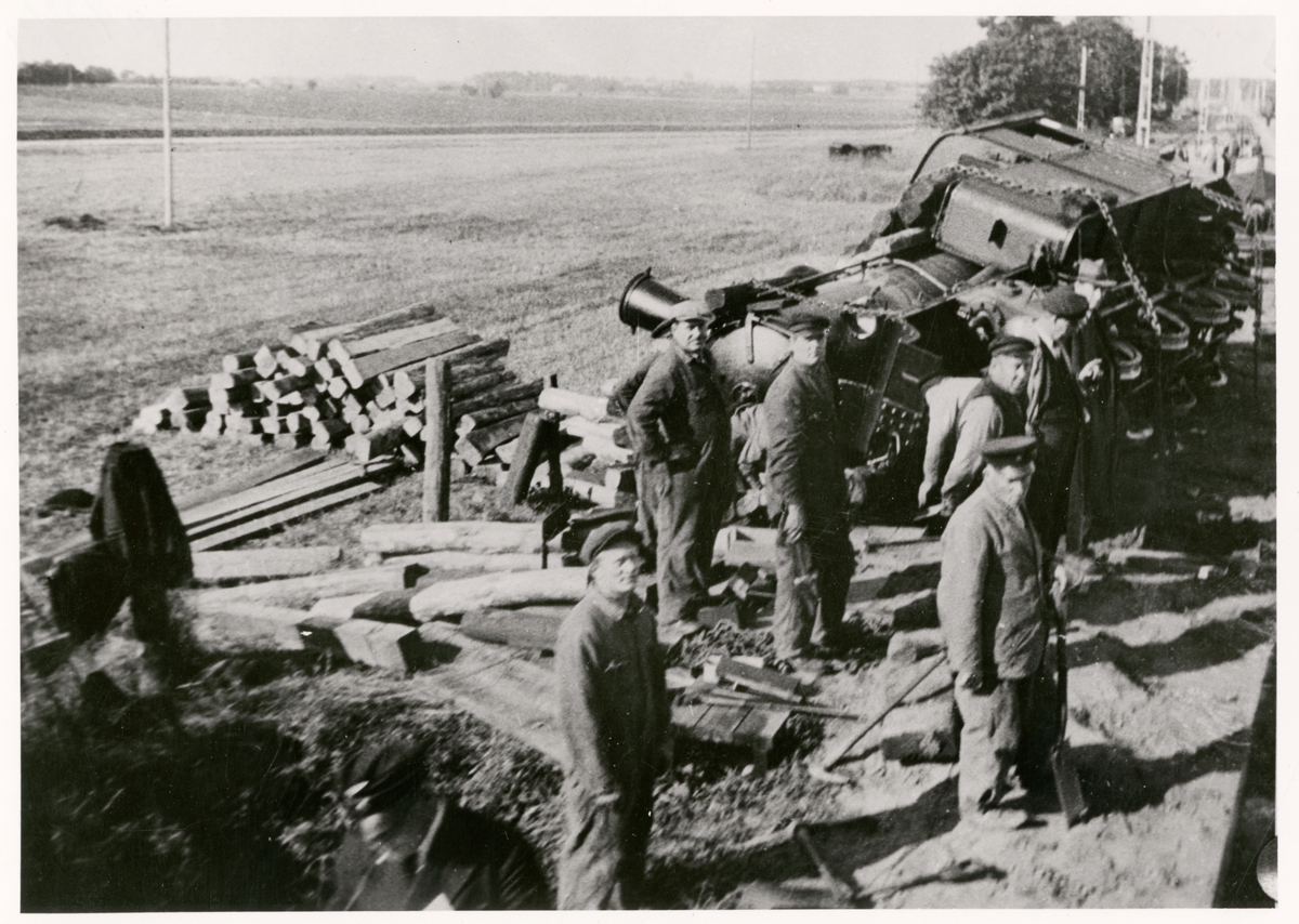 Ett sockerbetståg bestående av VSBJ lok 1 samt 52 st godsvagnar spårade ur i en växel och och loket välte på sidan.