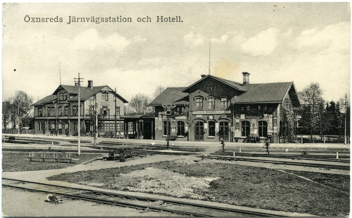 Öxnered station och järnvägshotell1911. Bergslagernas Järnväg, BJ. Stationen till höger på bilden.