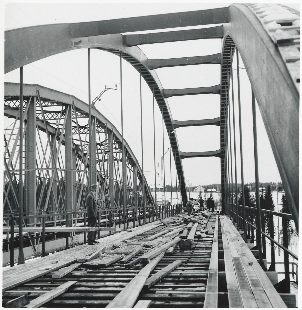 Anläggande av ny bro över Skellefteälven på linjen mellan Karsbäcken och Kusfors, längs norra stambanan.