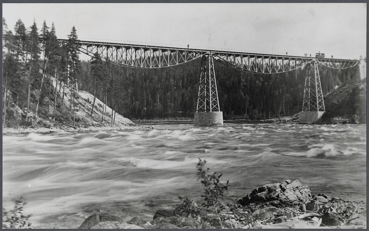Titel: Järnvägsbro över Vindelälven på linjen mellanVindeln och Degeråsen.