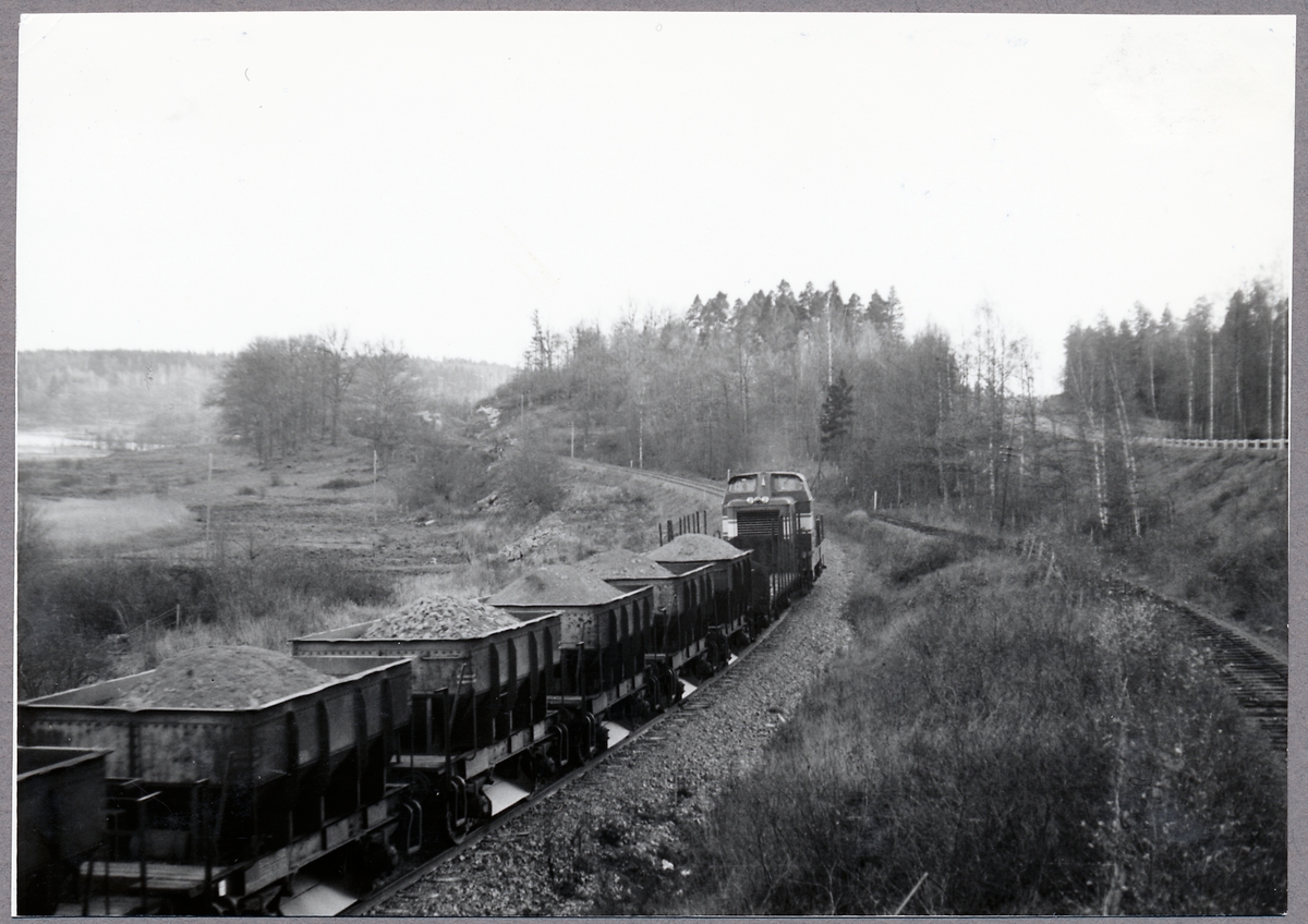 Gruståg på väg in till Almvik station, på sträckan mellan Segelrum och Almvik. SJ T43 241.