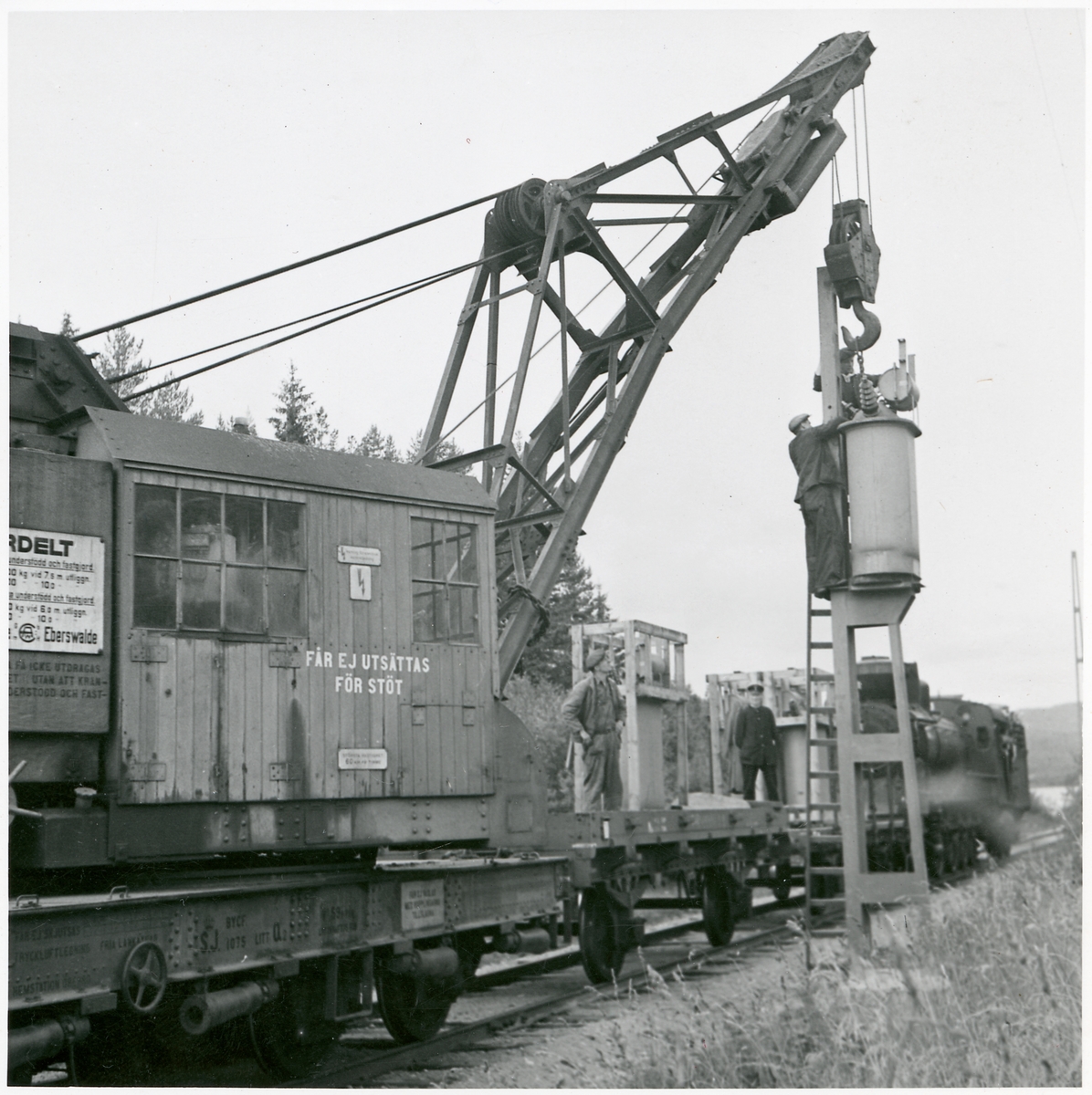 Lossning av sugtransformator. Statens Järnvägar, SJ Q2 1075.
