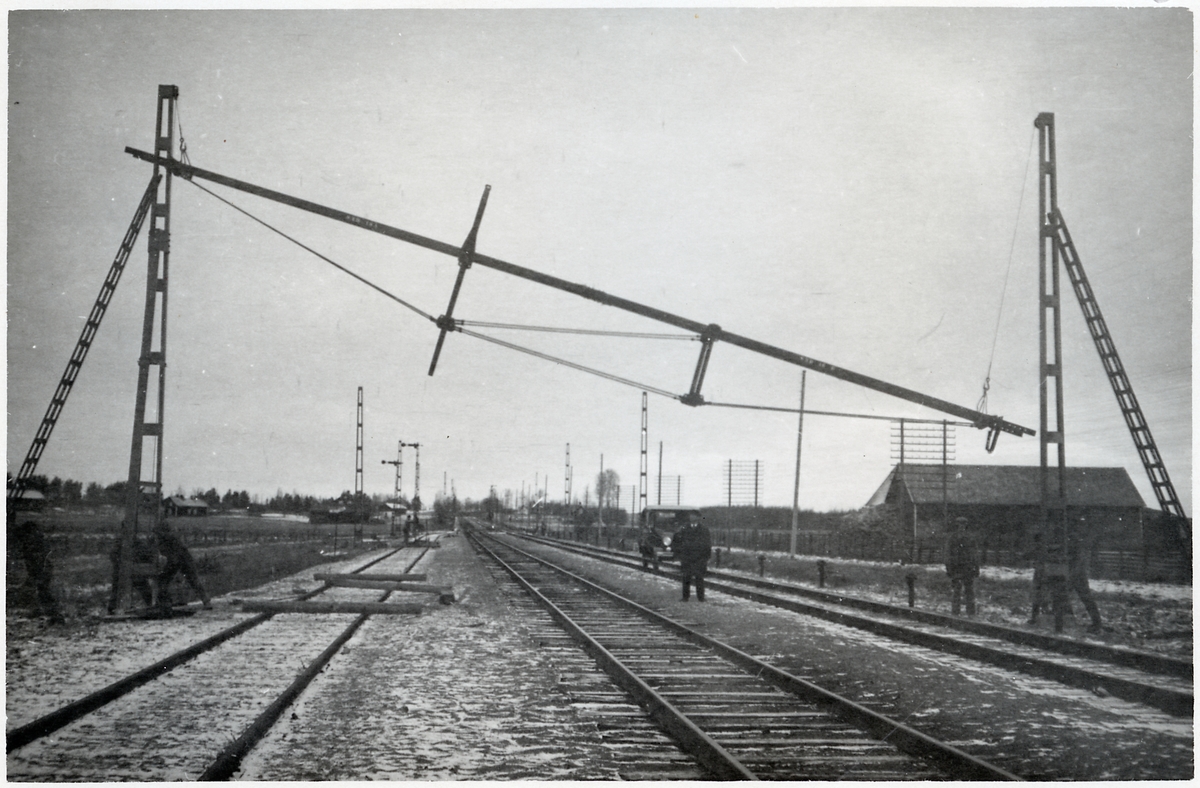 Titel: Montering av ledningsbrygga. På linjen mellan Hallsberg - Örebro.