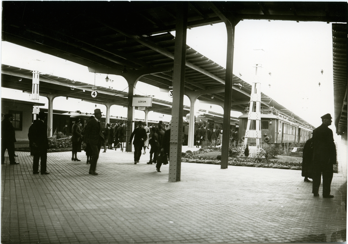 På andra sidan plattformen ett persontåg med S-lok och resgodsvagn F1.
