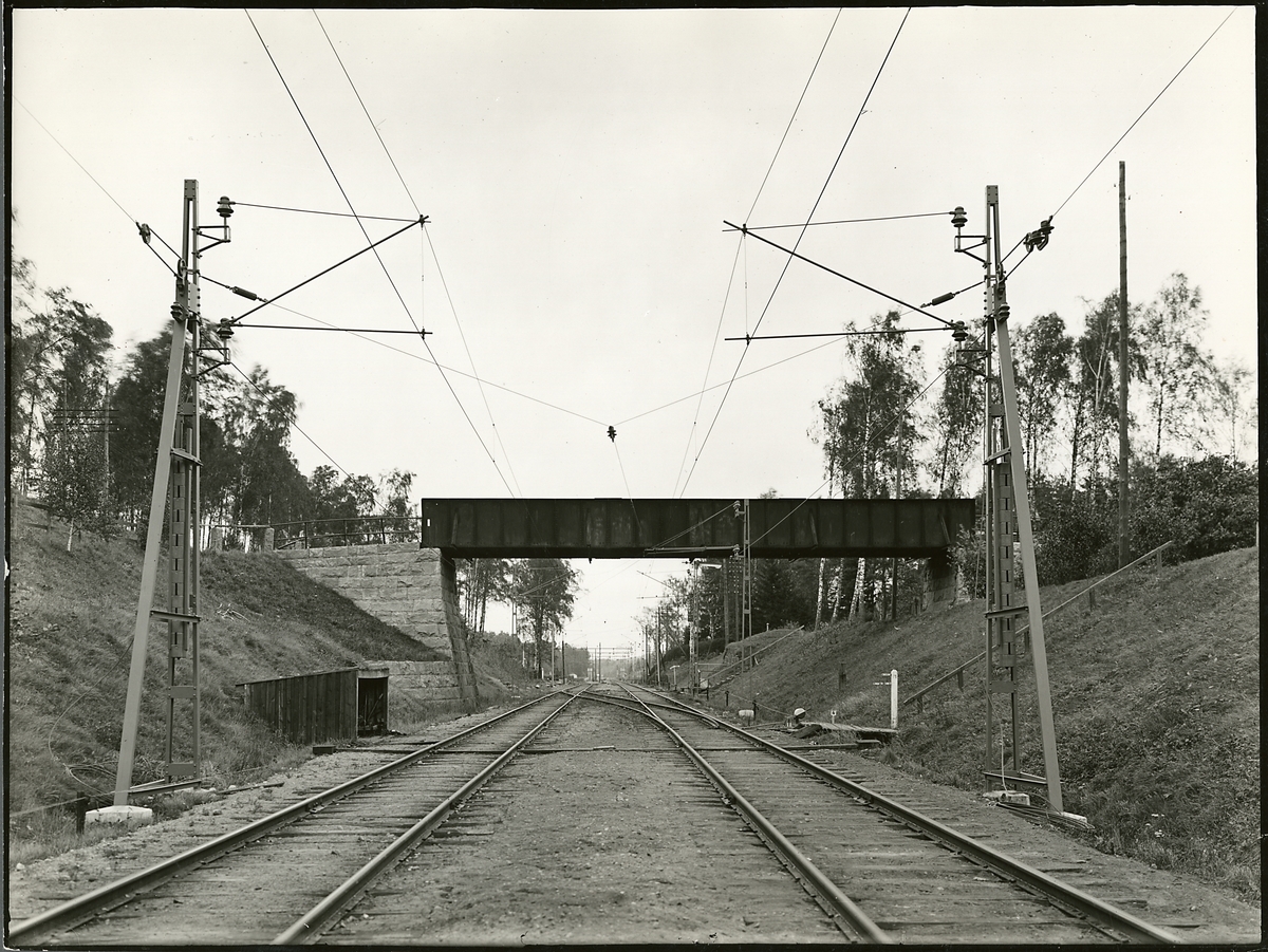Elektrifierat järnvägslinje.