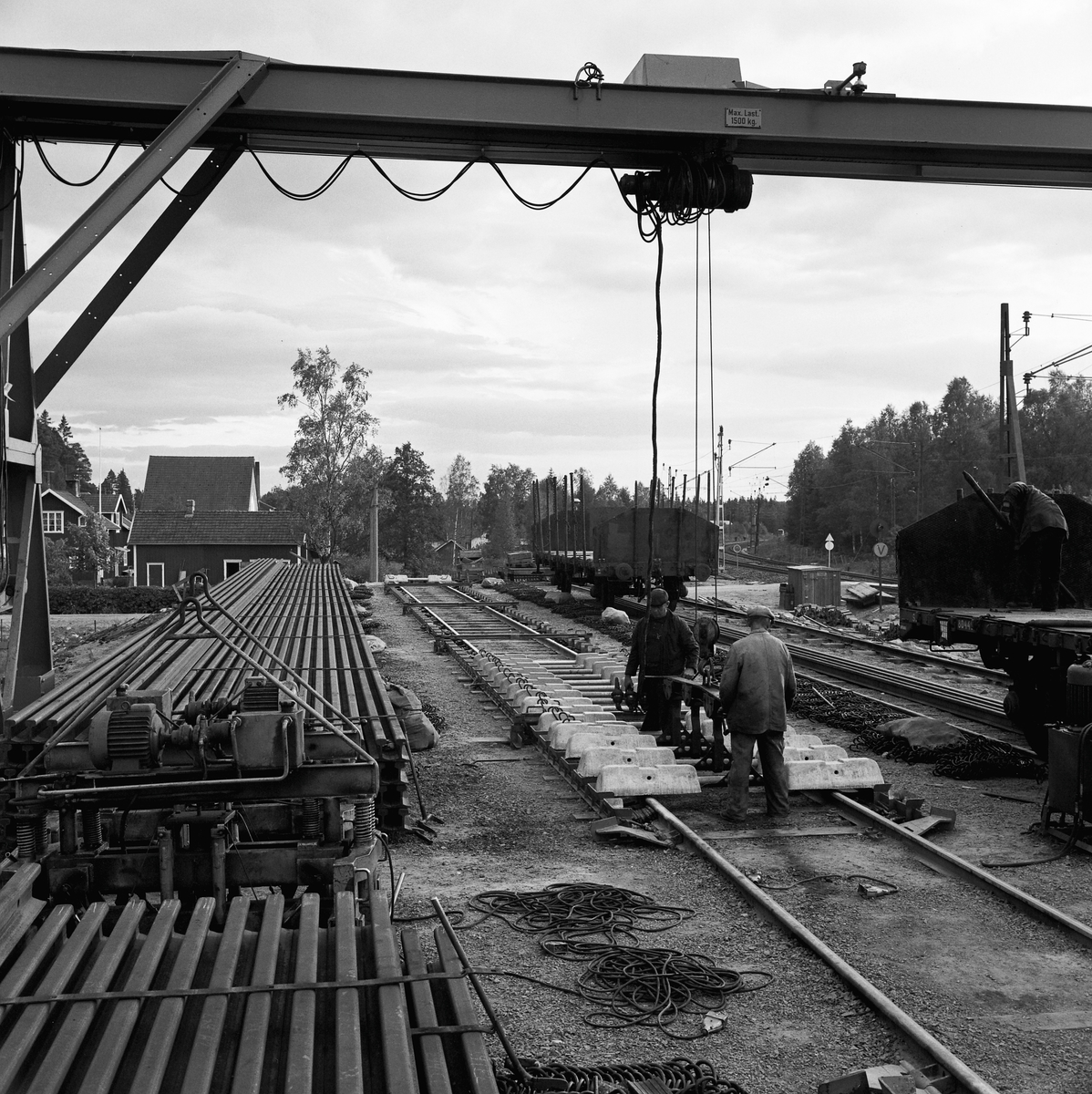 Titel: Spårarbete, Flisby-Solberga. Uttransport av färdigt spårspann