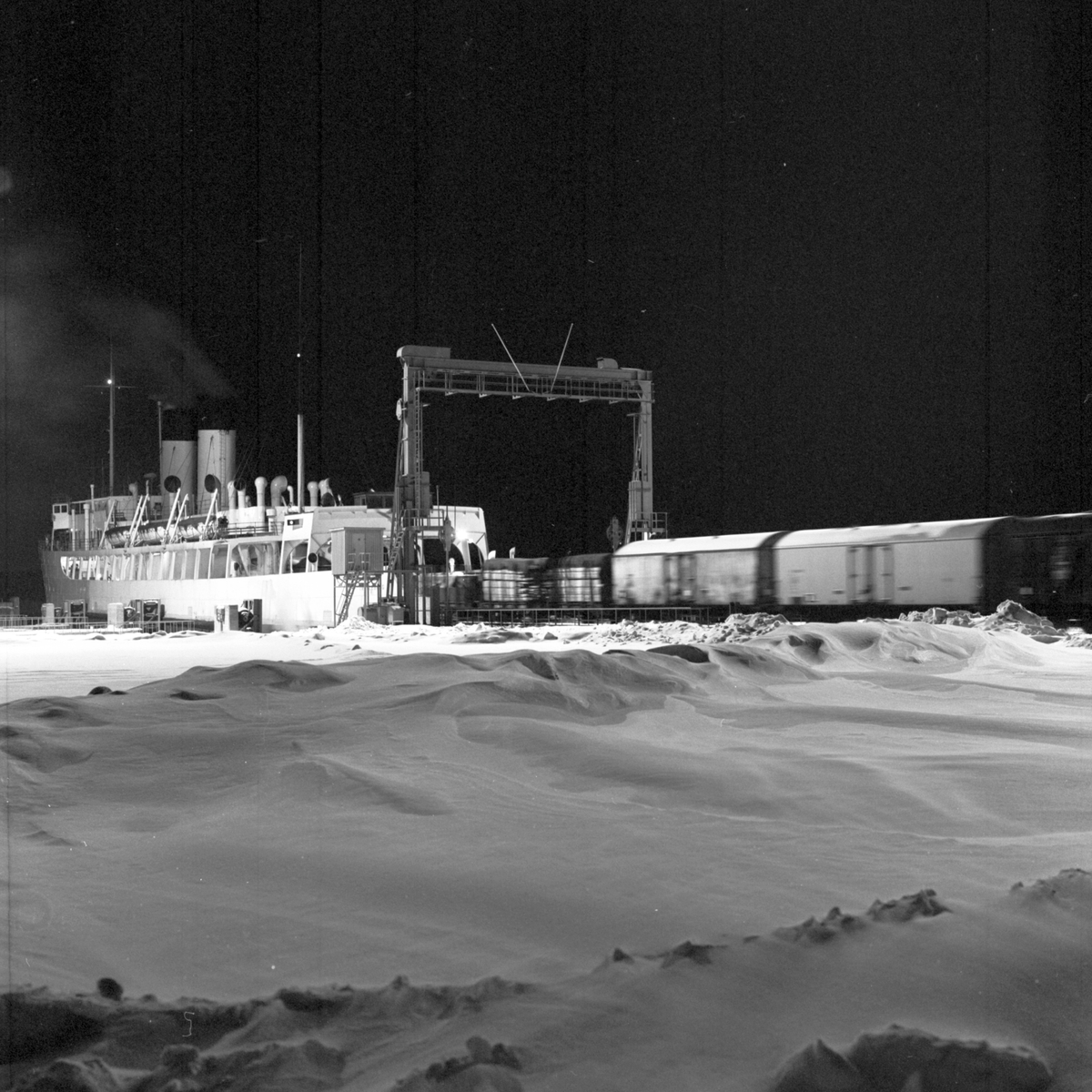 Titel: Tågfärjan S/S Starke, Trelleborg. Byggdes 1931 av Deutsche Werke, Kiel, Tyskland och levererades till Statens Järnvägar, SJ, Malmö. Har huvudsakligen trafikerat leden Trelleborg - Sassnitz. Insatt 1967 på den nya tågfärjeleden mellan Värtahamnen i Stockholm och Nådendal utanför Åbo