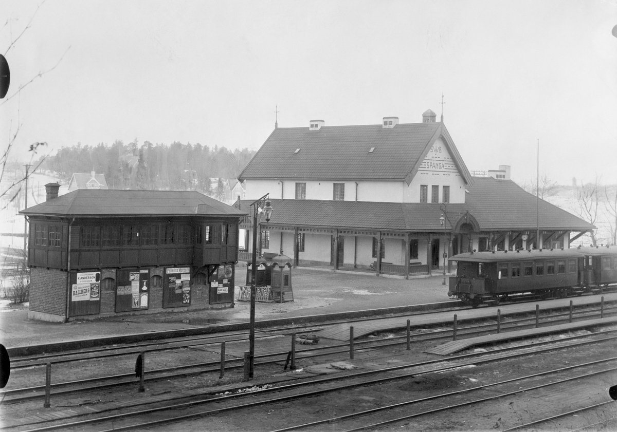 Det första stationshuset, ett envångings trähus, uppfördes 1875, revs 1908. Det nuvarande stationshuset, som togs i bruk 1908, är ett tvåvånings stenhus. Modernt elektriskt ställverk togs i bruk 1946 .Rivningsmaterialet från 1875 års station användes delvis vid byggandet av ett bostadshus för stationsföreståndaren i Ramnäs 1911 .1908 års stationshus revs på 1970-talet och ersattes av en pendeltågsstation med trapphus och expedition på plattformen.