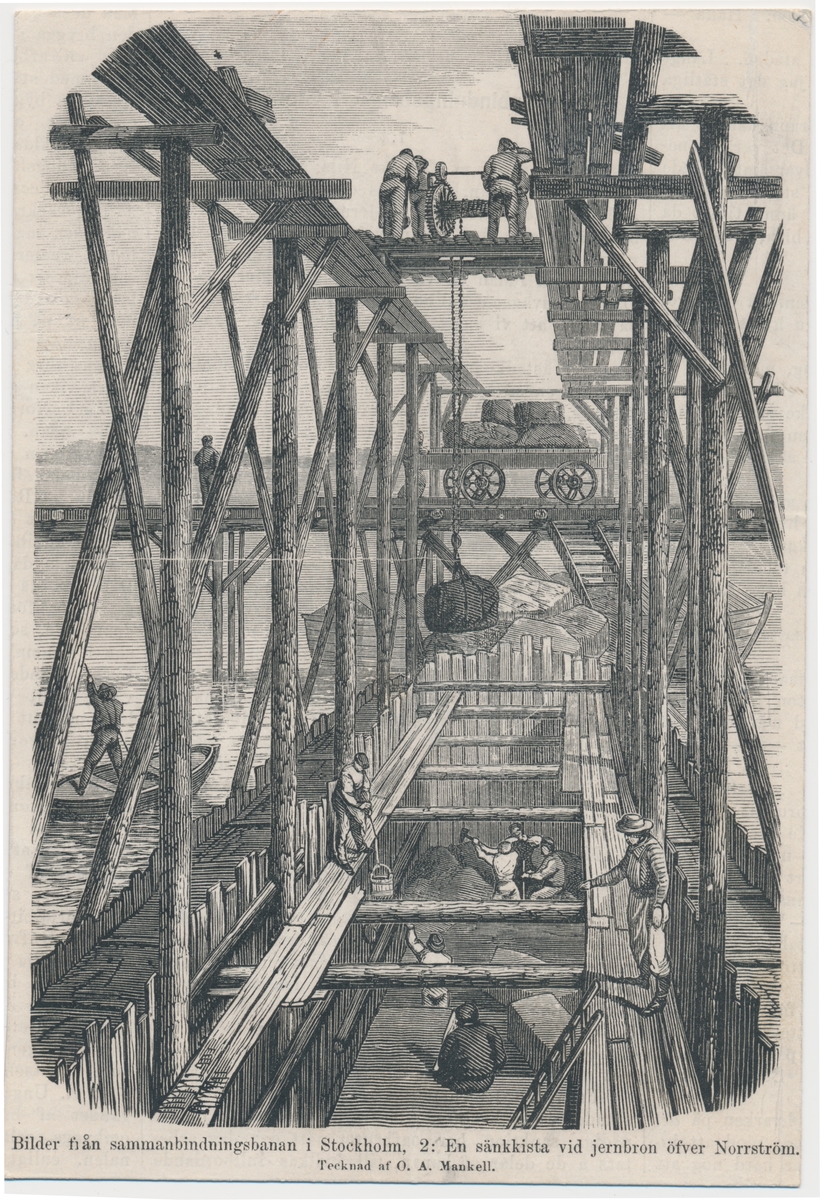 En sänkkista vid järnvägsbron över Norrström, Sammanbindningsbanan