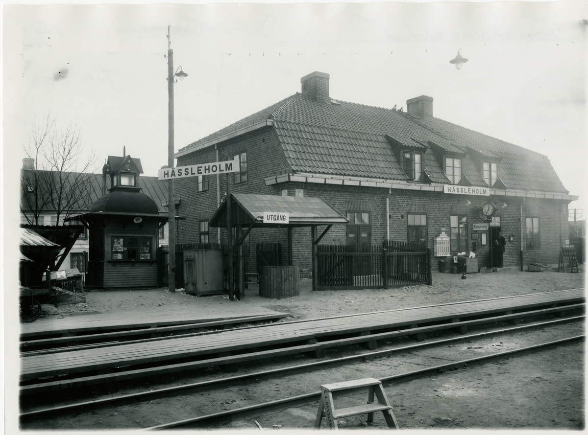 Bilden visar det provisoriska stationshuse som användes unde ombyggnaden 1914.