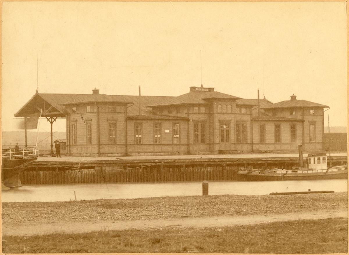 Köpings gamla järnvägsstation. Stationen öppnad för trafik 1875-12-07. 1939 ombyggdes stationshuset och fick därigenom en modern interiör. I samband med elektrifieringen 1947 byggdes godsmagasin. Även bangården ombyggdes. Stationen har tre industrispår till olika industrier.