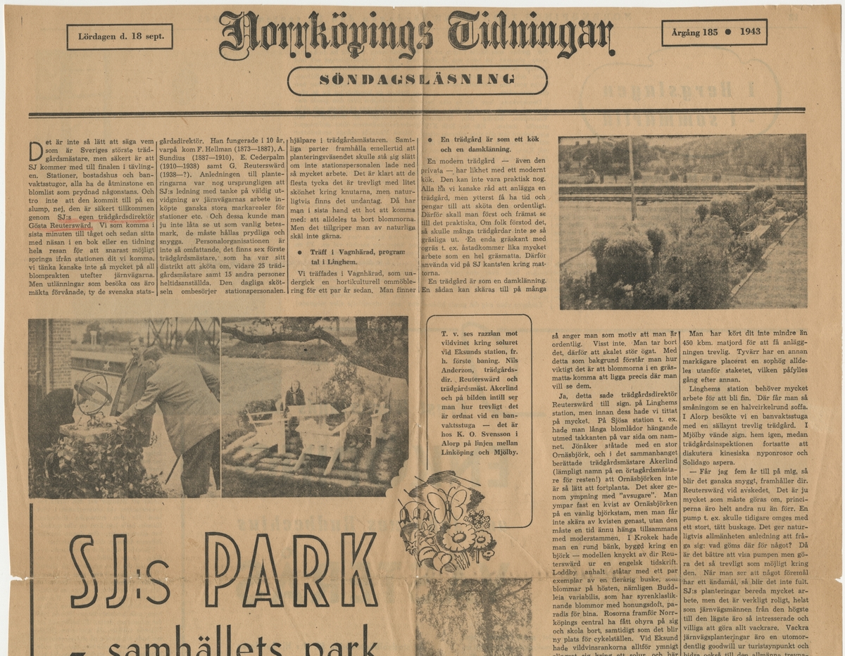 Norrköpings Tidningar, 18-09-1943: Söndagsläsning. SJ:s park - samhällets park.