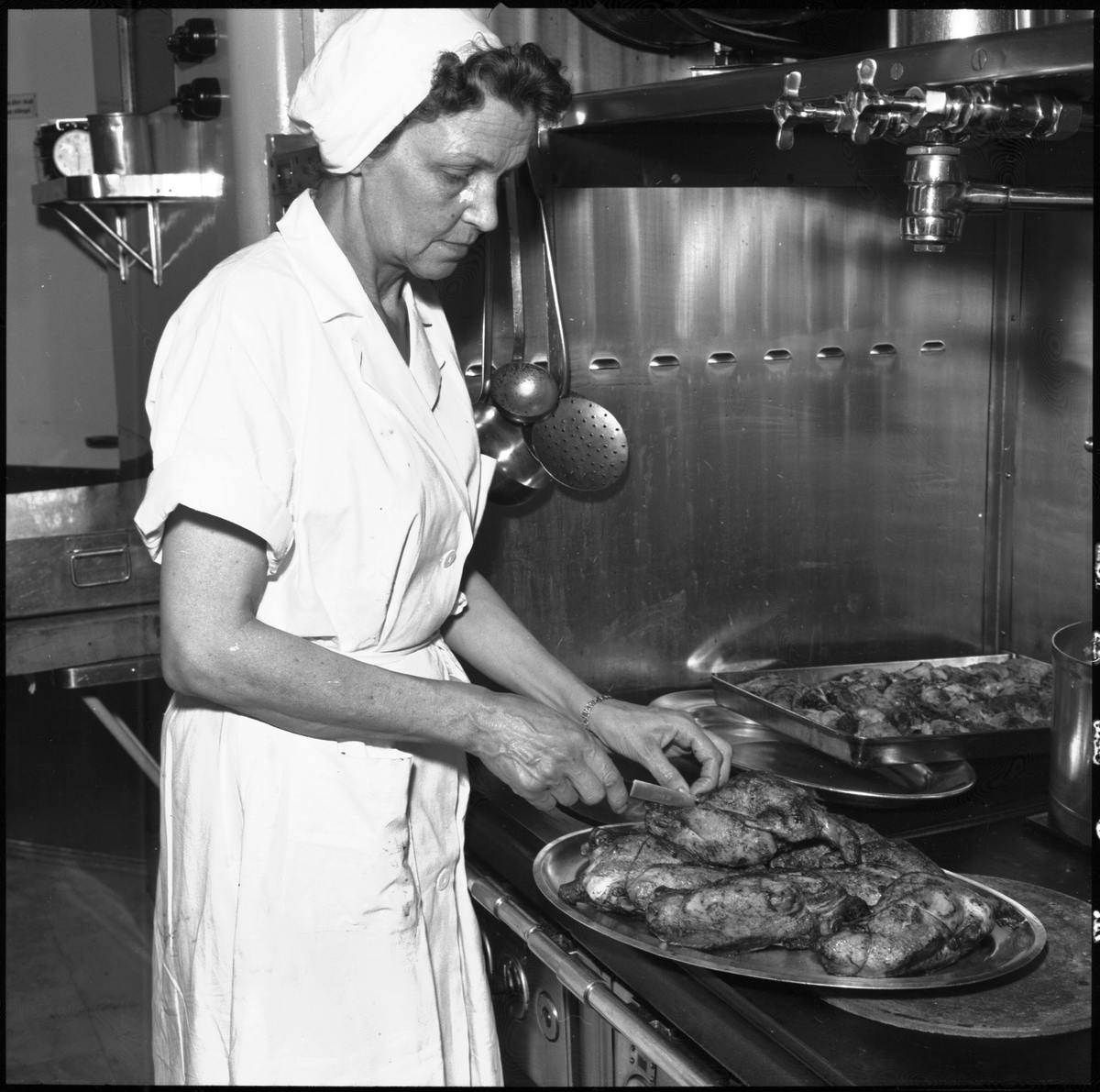 Statens Järnvägar, SJ Ro3. Sunlit Nights Land Cruises (SNLC) -tåget. Personal i restaurangvagnen.