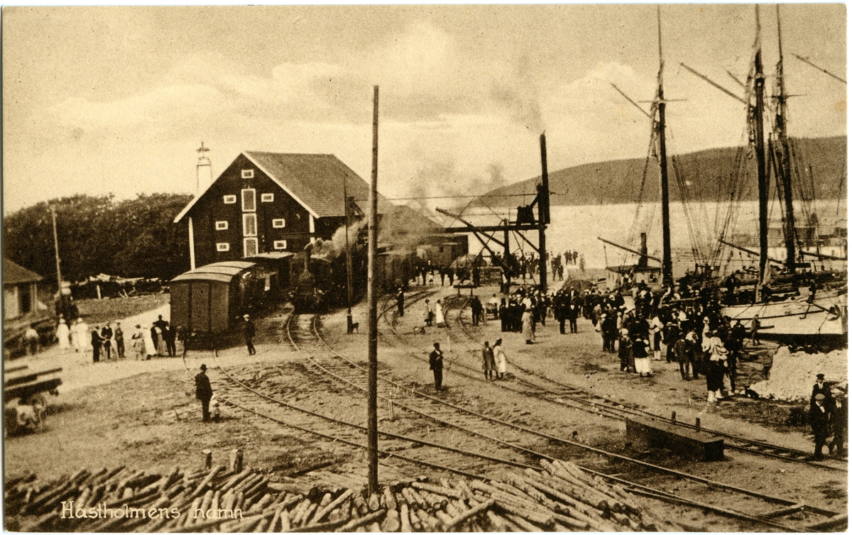 Hästholmens hamn med Mjölby Hästholmens Järnväg, MHJ lok 1 eller 2.