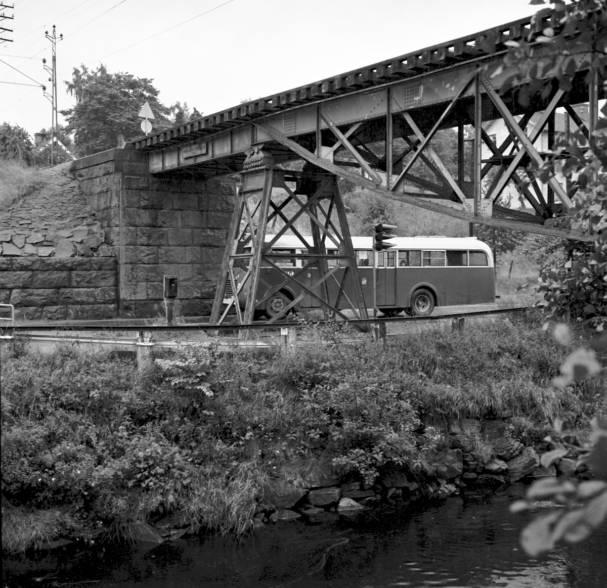Druvefors vägport i Borås. Under orten Gässlösavägen och vattendraget Viskan. Bussen tillhör Stadsbussar i Borås AB, linje 10, och är på väg från Kristineberg till centrum.