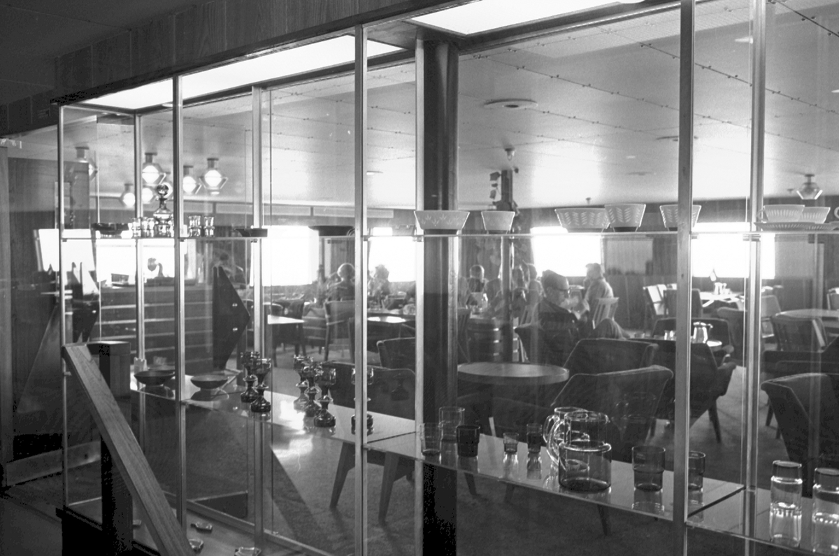 Ålandsresa. M/S Nordia. Skåp med glas och porslin