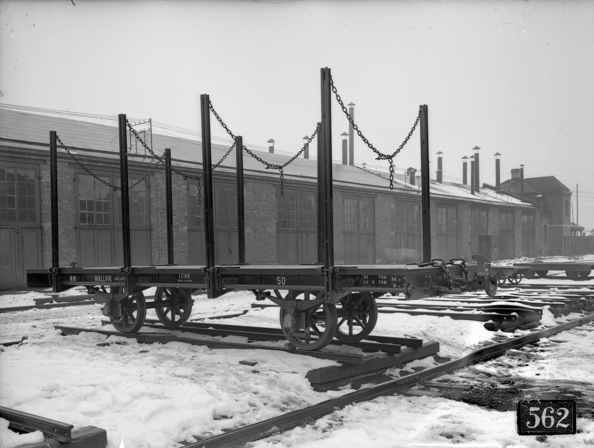 Godsvagn tillverkad av Aktiebolaget Svenska Järnvägsverkstäderna, ASJ, för Sulfit AB Ljusnan, vagnslittra NN 50.