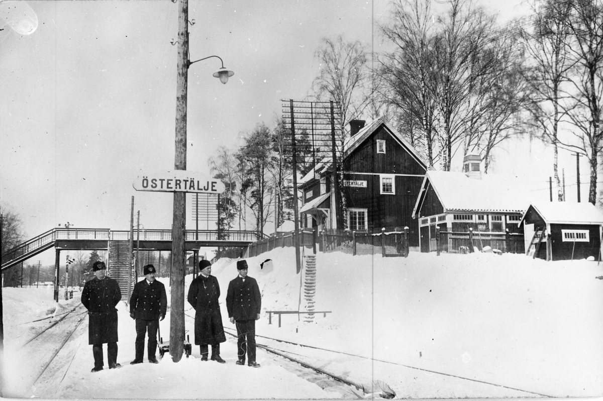 Mekanisk växelförregling . På bilden syns stationsmästare Otto W. Eriksson som var verksam under 1920- 1934.
