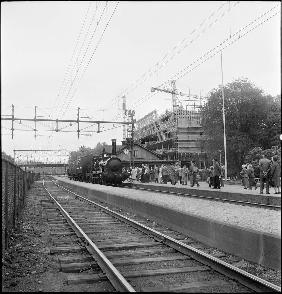 Statens Järnvägar, SJ B 3 "Prins August" på väg från Stockholm C till Sundbyberg under International Congress of Museums 1959. Här i Sundbyberg.