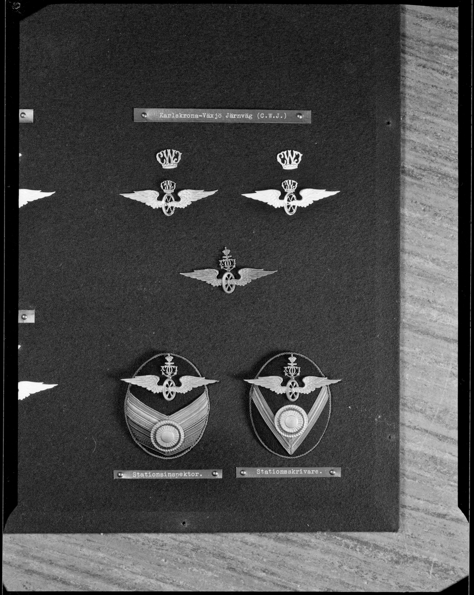 Uniformstecken från CWJ, Karlskrona-Växjö Järnväg. Stationsinspektor. Stationsskrivare.