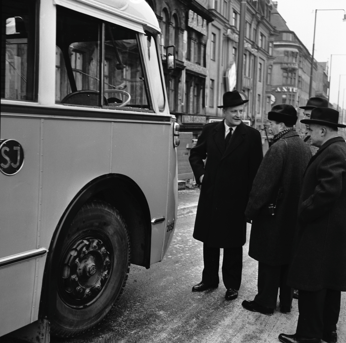 Visning av vägbussar, Klarabergsviadukten. Generaldirektör Erik Upmark