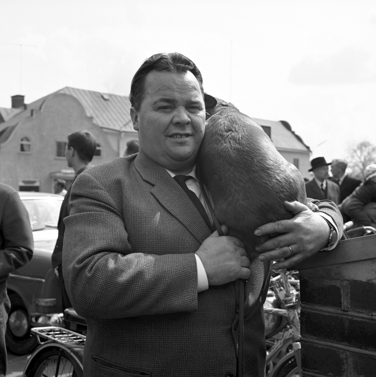 Elektrifiering av sträckan Borås-Alvesta. Man med hund