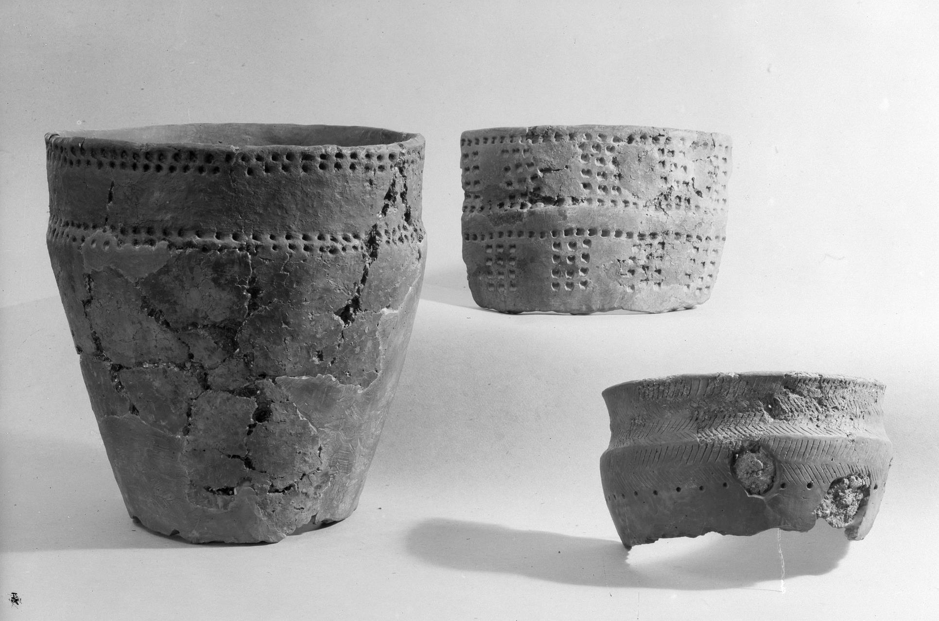3 rekonstruerade lerkärl från Alvastraboplatsen. Ur utställningen "10 000 år i Sverige".