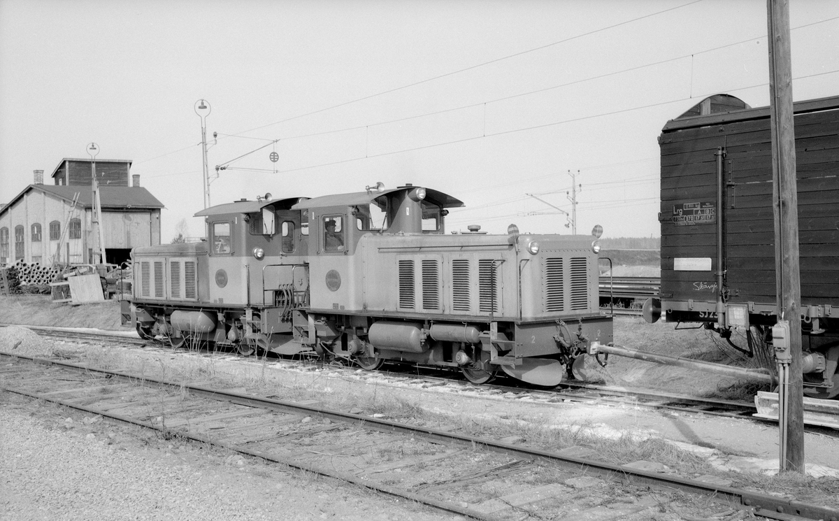 Dala - Ockelbo - Norrsundets Järnväg, DONJ diesellok 1 "Åbron" och 2 "Brattfors". Multippelkopplade. Träkolsvagn SJ Lrg.