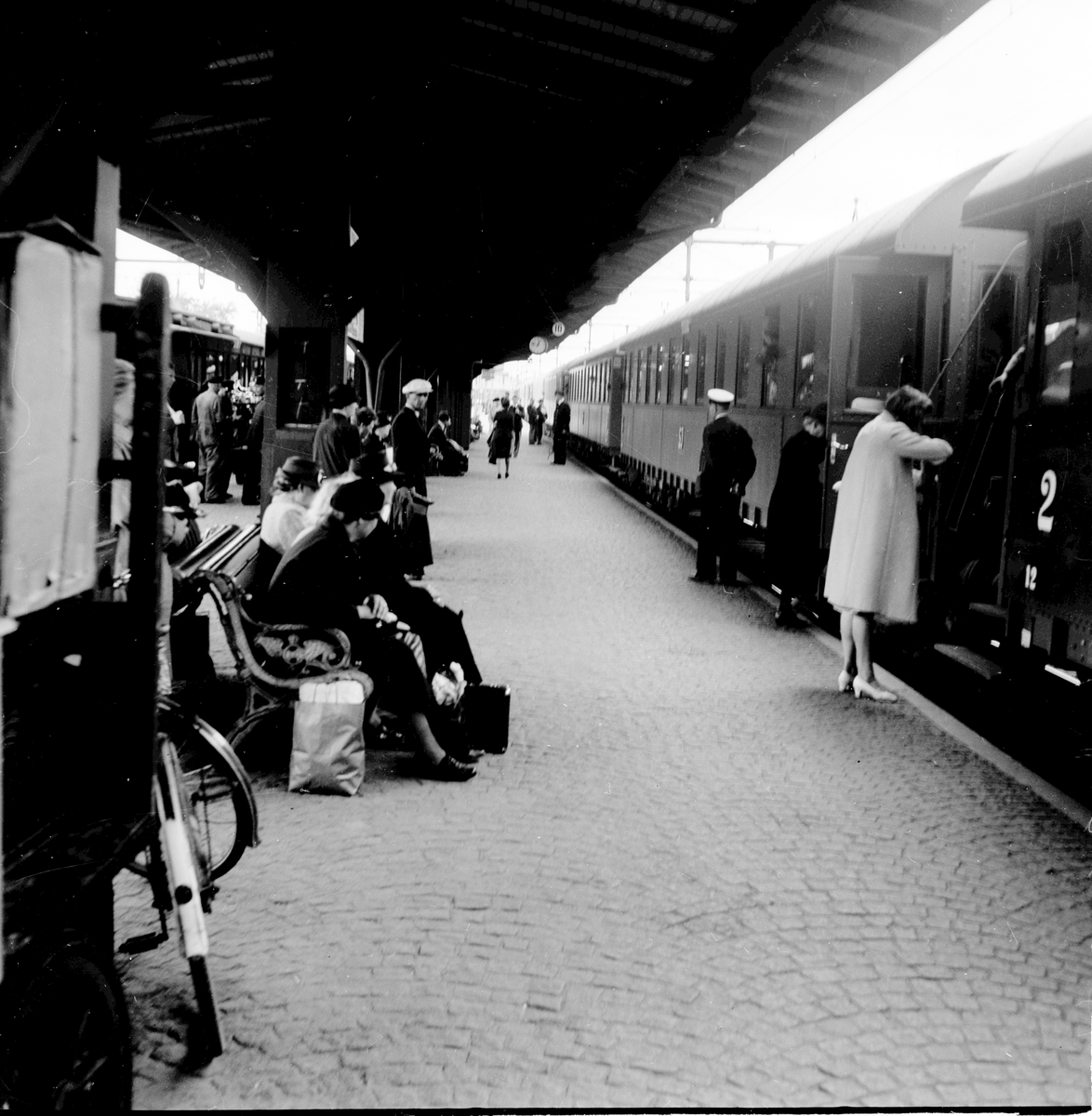 Titel: Plattformen med resande på Lunds centralstation.