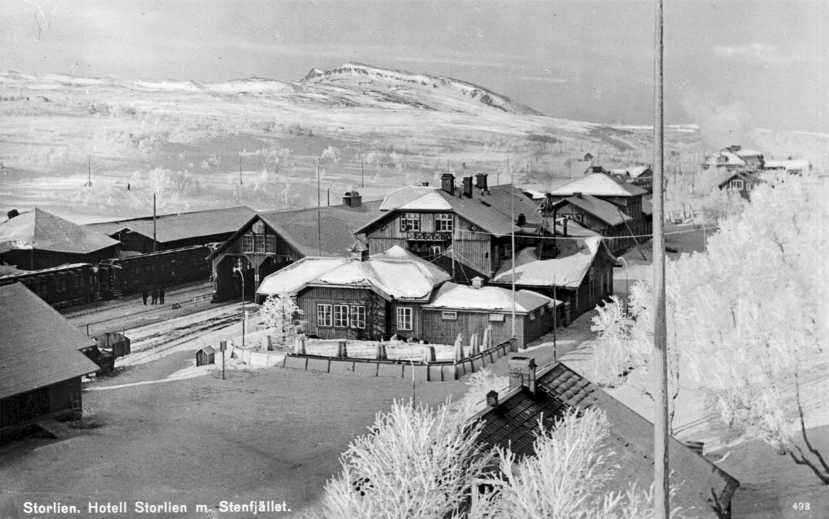 Titel: Storliens fjällhotell med Stenfjället i bakgrunden.