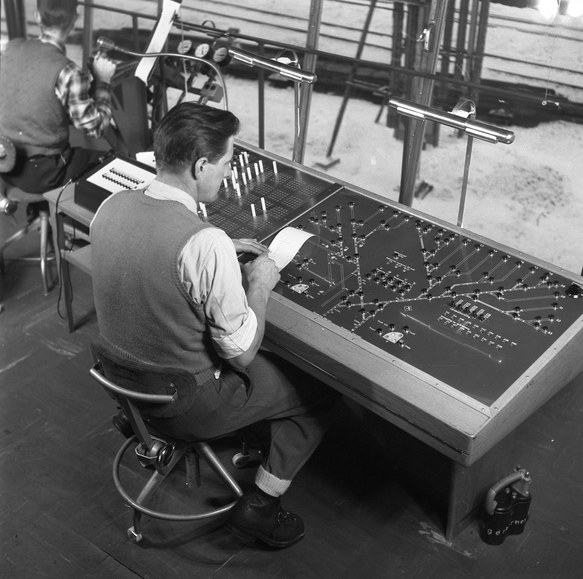 Titel: Mekanisering av bangården. Rangerledaren följer släppen på manövertavlan. Troligen Ånge